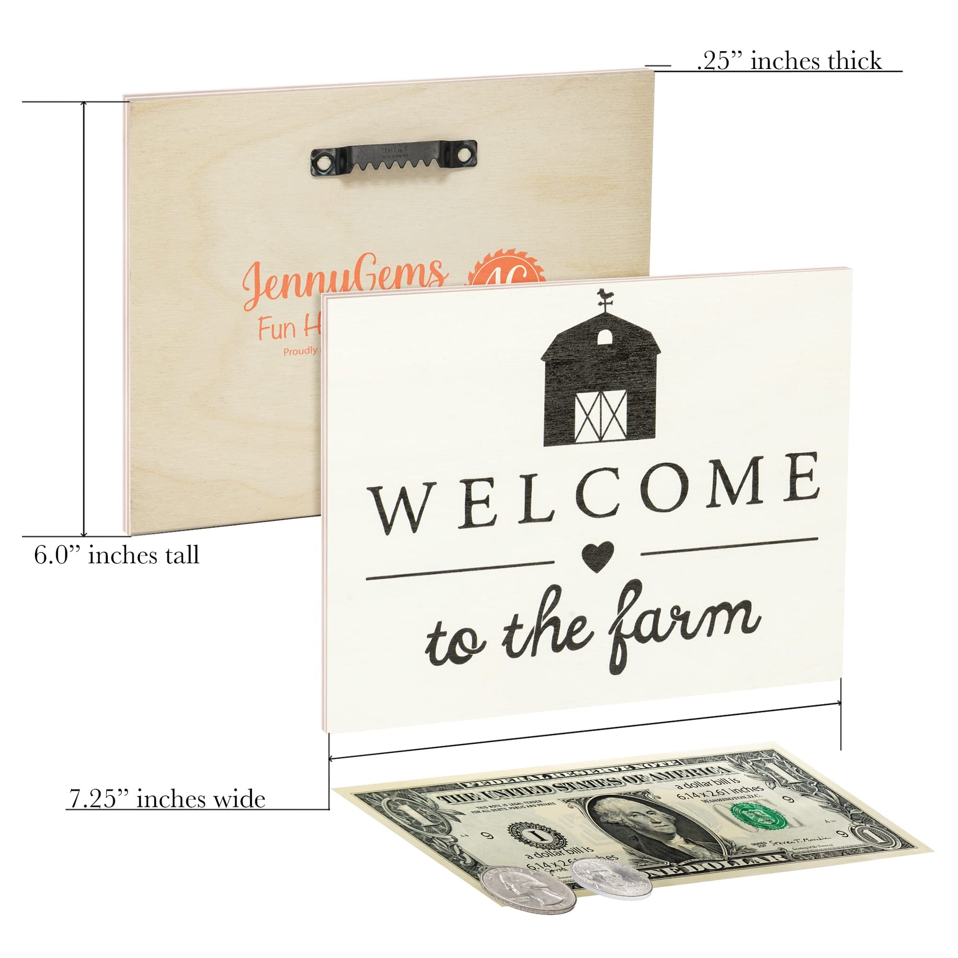 The "Welcome to the Farm" wooden sign adds rustic charm to any space. This farmhouse wall decor celebrates country life with a sweet, sentimental design that is perfect for farm enthusiasts and animal lovers. Handcrafted in Delaware, USA, it makes a meaningful addition to barns, kitchens, or entryways.