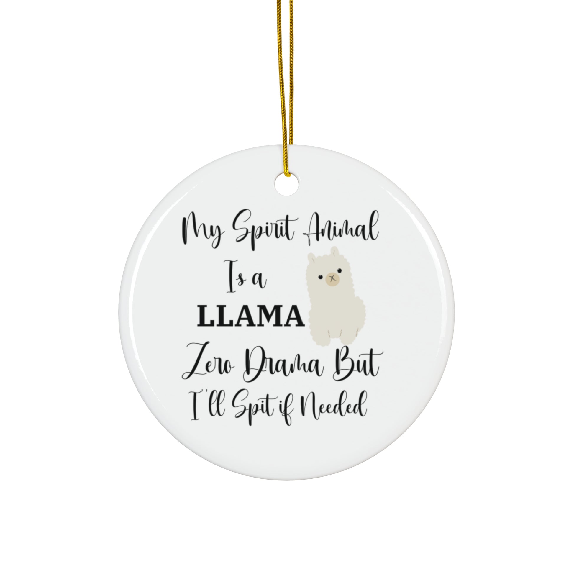Quirky llama spirit animal Christmas ornament perfect for animal lovers. Adds a fun and unique touch to your holiday tree. Ideal for those who appreciate humor and unconventional decor. Great for Christmas and holiday celebrations.