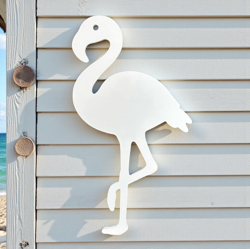 Brighten your outdoor space with this durable PVC flamingo wall sign. Crafted to withstand coastal weather, it resists rust, rot, and impact while maintaining its charm in humid or salty environments. Available in 24" or 36" sizes, this USA-made piece works beautifully on patios, garages, sheds, or entryways. Paint it with exterior acrylic or spray paint to match your style, or keep it classic white for instant tropical appeal.